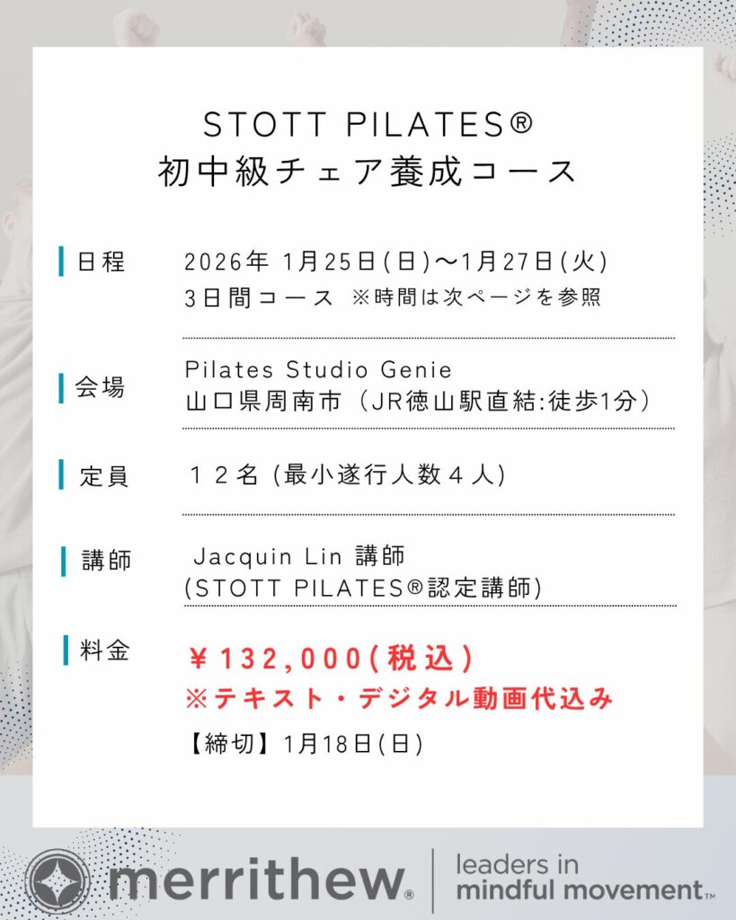 スタビリティーチェアの初級・中級のエクササイズおよび指導方法を学びます。